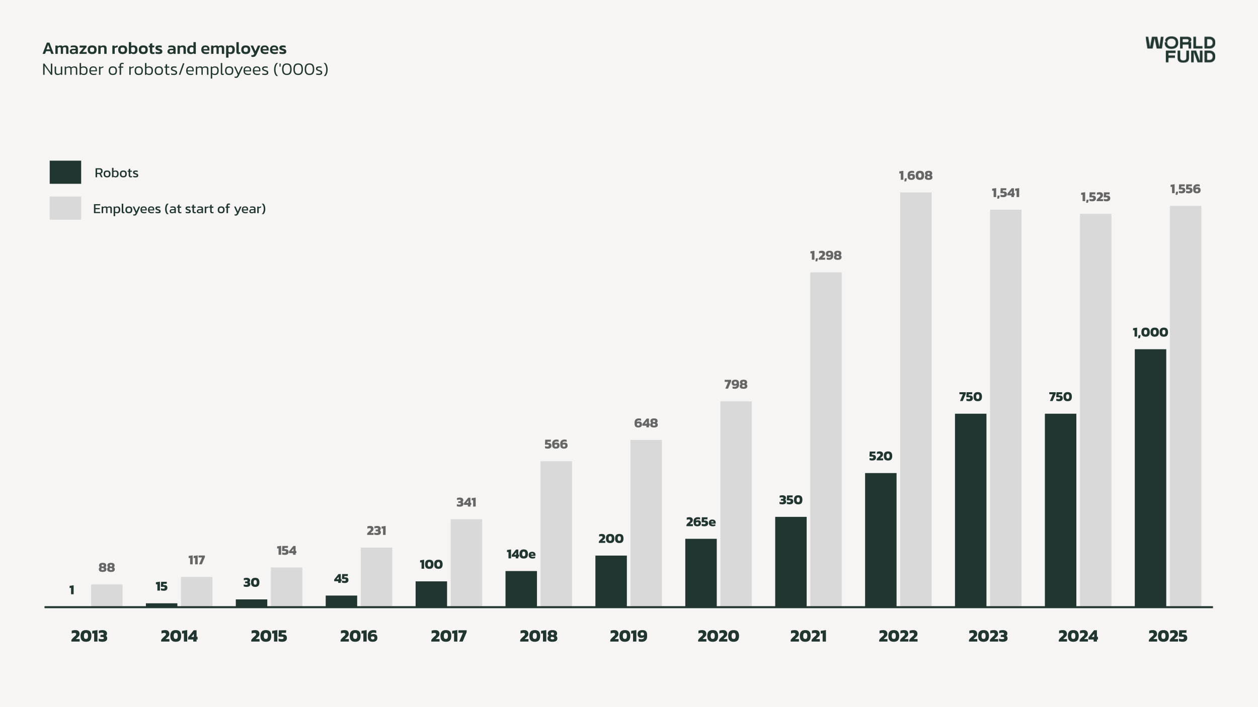 The proof of this trend is visible: Amazon's employee headcount has remained flat since 2022, even as its robot deployments have grown steadily. Customers across logistics, manufacturing, and warehousing demand payback periods of just a few years.